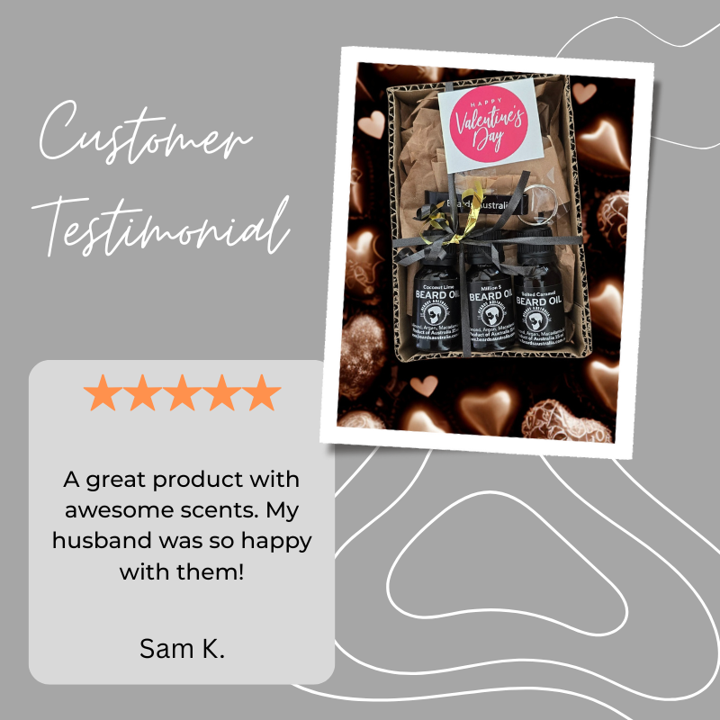 Pack of 3 bottles, 15ml each. The lightweight Beard Oil will help soften and nourish the follicles on the skin & beard. Our beard oil is locally sourced, hand-poured in Australia, and packed full of natural ingredients containing Almond, Argan, Macadamia & Jojoba oils. Our signature fragrance is Million $, very classy. Salted Caramel is sickly sweet & Coconut lime smells like an island paradise. Here at Beards Australia, we pride ourselves on using the best natural oils available to moisturize & help keep your facial hair healthy. Warning – These fragrances are the most seductive scents according to females.