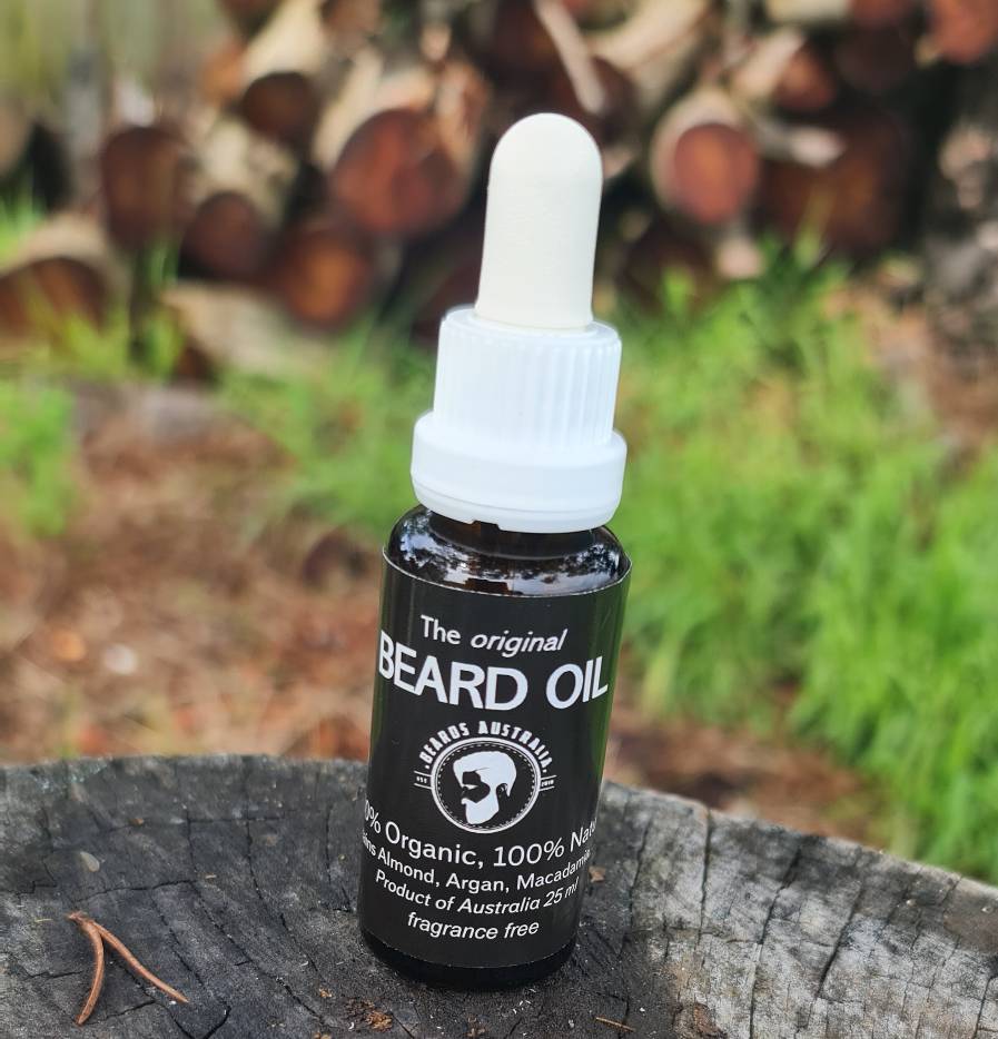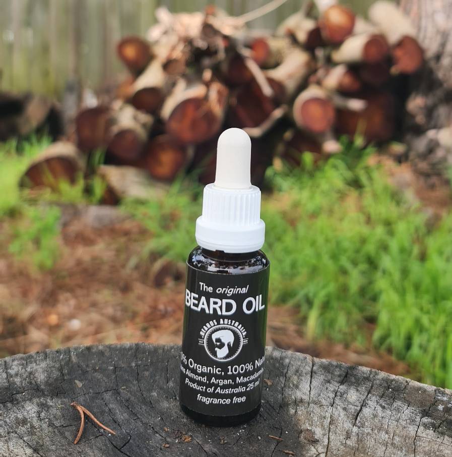 Organic Natural Beard Oil Fragrance-Free 25 ml. The lightweight Beard Oil will help soften and nourish the follicles on the skin & beard. Our beard oil is made in Australia and packed full of natural ingredients containing Almond, Argan, Macadamia & Jojoba oils. Here at Beards Australia prides we pride ourselves on using the best natural oils available to moisturize & help keep your facial hair healthy. Fragrance-free for those newly grown beards just starting their journey and the ones that are a little sensitive too.